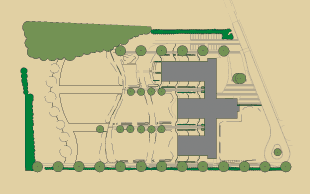 Baumreihen bilden die formalen Achsen. Im Norden befindet sich der